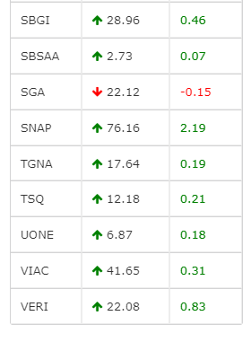 On the TV side, Nexstar, Sinclair Broadcast Group, and Scripps were among the gainers as Dish and Nielsen were down.