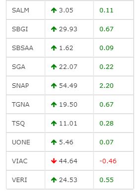 That’s more sour news for that lone decliner: ViacomCBS.