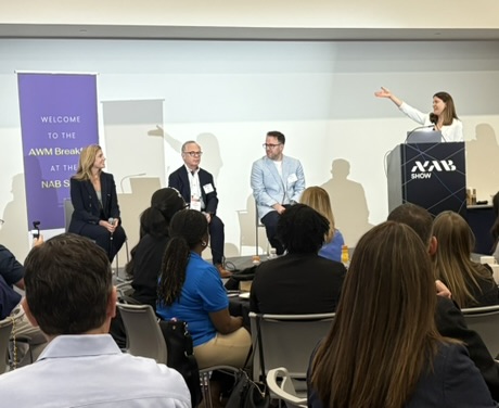 The AWM Breakfast drew industry leaders for a conversation on navigating uncertainty, with Badalamente joined by Amazon Head of Business Affairs for Creator Services Jordan Chatfield, and NewsBalancer President Lee Harris. Serving as moderator was Skyview’s Sarah Foss, formerly of Audacy Inc.