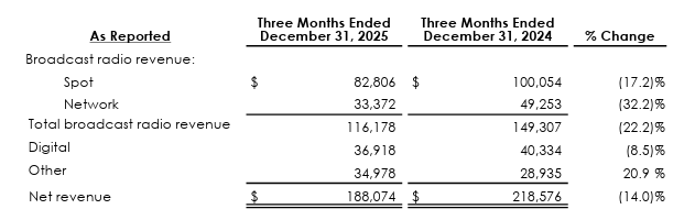 While the Q1 2026 numbers remain a mystery, Cumulus on Friday morning revealed its FY 2025 and fourth quarter 2025 results.