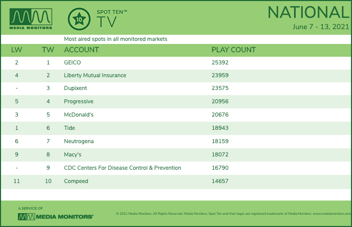 Meanwhile, Progressive and its latest wave of TV spots comes in at No. 6, with some 40,005 spots.