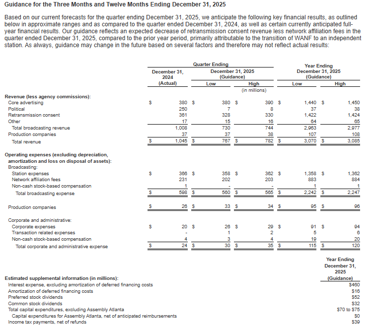How significant was the political shift? Those dollars this quarter came in at $8 million, compared to an incredible $173 million in Q3 2024. Two years ago, political revenue totaled $26 million, reflecting big off-year races in key markets where Gray owns TV stations.