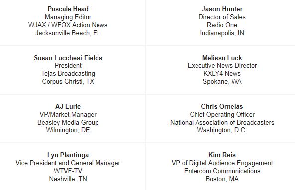 This year’s program sponsors include Beasley Broadcast Group, Cox Media Group, Fox TV Stations, Futuri, Gray Television, Hearst Television, Legend Communications, Morgan Murphy Media, NAB, Nielsen Foundation, Quincy Media and The E.W. Scripps Company.