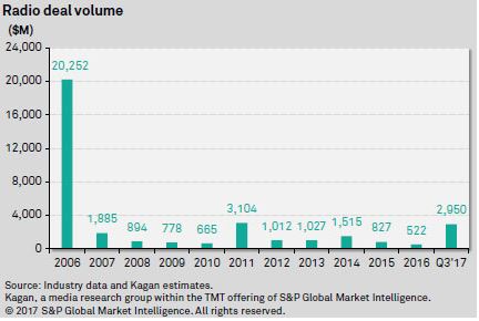 In Q3, some $123 million is attributed to radio station sales, with nearly 50% attributable to the sector’s top deal.