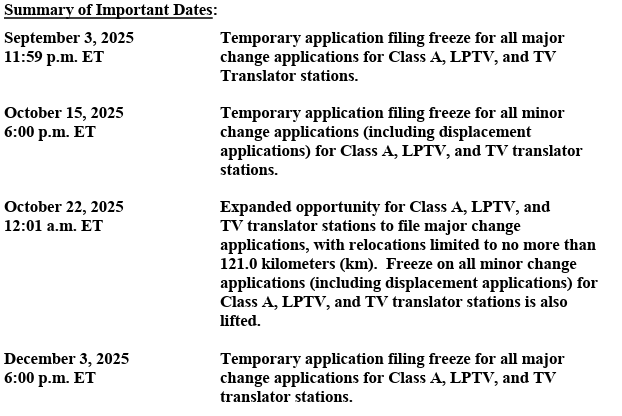 Major Change Freeze Ends For LPTVs, Class A TV Stations