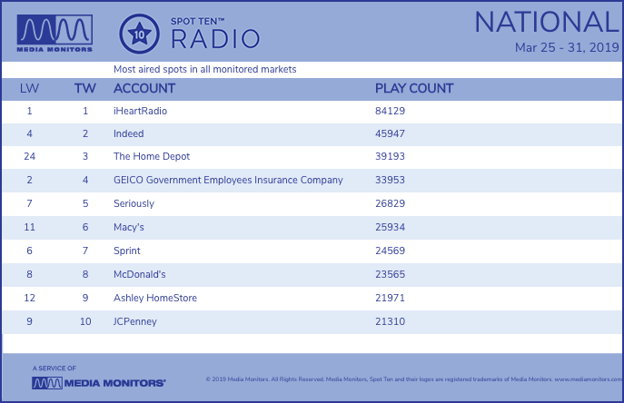 Some 39,193 spot plays were detected for one of radio’s top advertisers.