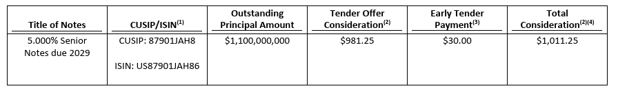 The Tender Offer and Consent Solicitation are on track to expire on April 2 at 5pm Eastern. They bear the following terms: