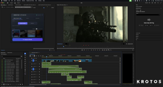 The goal is to reduce the need to switch between tools and allow editors to build a first pass of sound design as they cut picture. Introducing the newest product from Krotos, which enables editors to access the media technology company’s “Video to Sound” technology directly within the timeline.